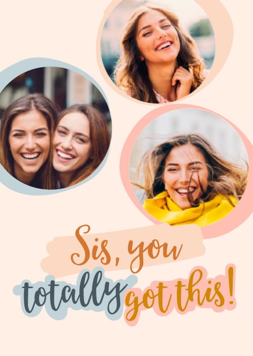 Leuke denken aan kaart om naar je zus te sturen met de tekst: Sis, you totally got this! Voeg drie leuke foto's toe aan de kaart.