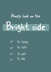 Laat iemand weten dat je aan hem of haar denkt met dit leuke kaartje met een grappige tekst: Always look on the bright side, no shaving, no traffic, no pants, no fomo.