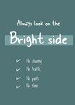 Laat iemand weten dat je aan hem of haar denkt met dit leuke kaartje met een grappige tekst: Always look on the bright side, no shaving, no traffic, no pants, no fomo.
