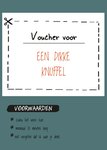 Geef iemand doormiddel van deze leuke kaart een voucher voor een dikke knuffel met onder aan de kaart een aantal voorwaarden.
