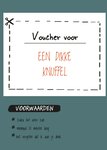 Geef iemand doormiddel van deze leuke kaart een voucher voor een dikke knuffel met onder aan de kaart een aantal voorwaarden.