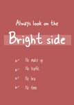 Laat iemand weten dat je aan hem of haar denkt met dit leuke kaartje met een grappige tekst: Always look on the bright side, no make up, no traffic, no bra, no fomo.