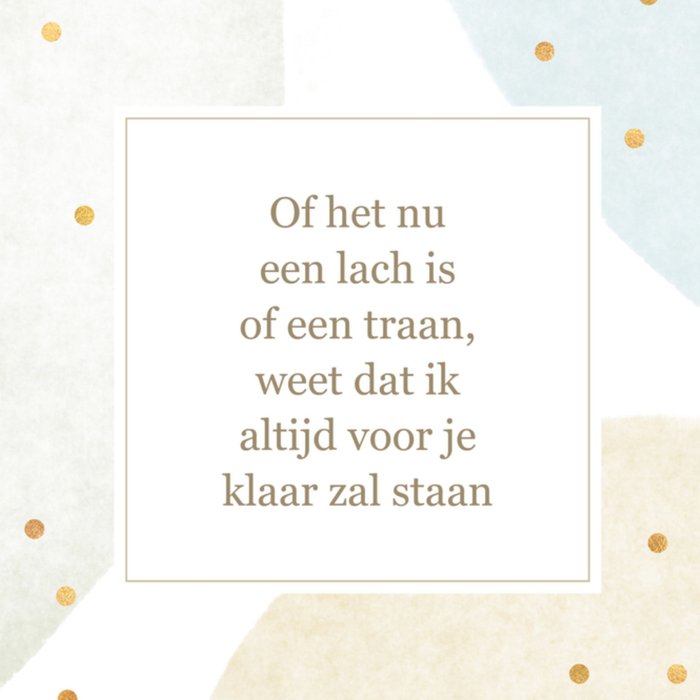 Op deze denken aan kaart staat een lieve tekst geschreven.