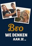 Laat je broer weten dat je aan hem denkt met deze kaart en de tekst: Bro we denken aan je.. Ook kun je twee foto's toevoegen.