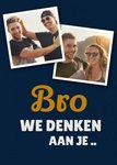 Laat je broer weten dat je aan hem denkt met deze kaart en de tekst: Bro we denken aan je.. Ook kun je twee foto's toevoegen.