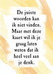 Als je de juiste woorden niet kunt vinden dan staan ze in ieder geval op deze kaart: "De juiste woorden kan ik neit vinden. Maar met deze kaart wil ik je graag laten weten dat ik heel veel aan je denk."