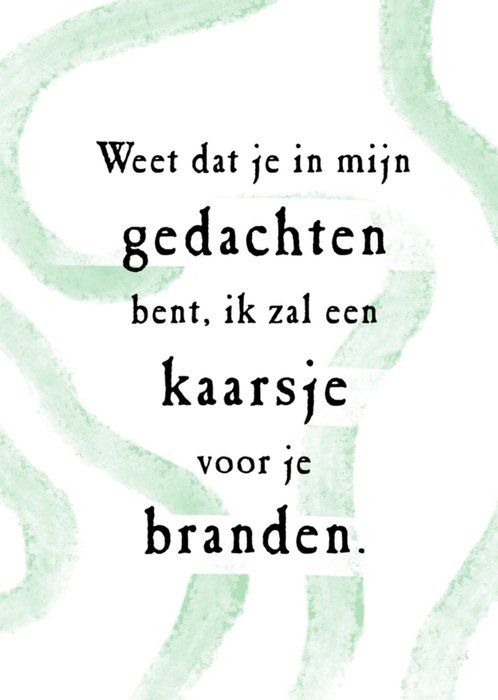Een lieve kaart om te laten weten dat je er voor hem of haar bent. "Weet dat je in mijn gedachten bent, ik zal een kaarsje voor je branden."