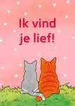 Roze valentijnskaart van Dikkie Dik, met op de voorkant een illustratie van Dikkie Dik en een andere kat.