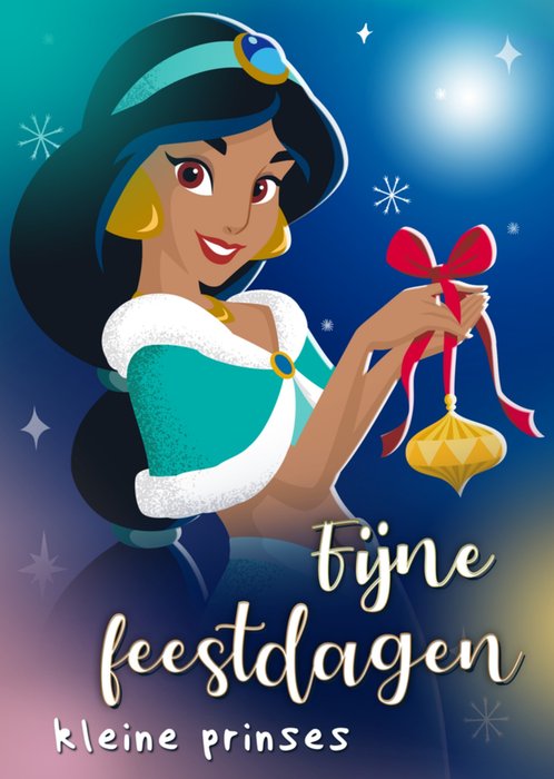 Leuke kerstkaart van Disney Prinsessen met Prinses Jasmijn.