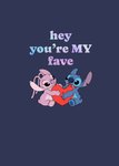 Leuke Valentijnskaart van Disney met Lilo & Stitch. Met de tekst: Hey you're my fave.