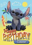 Verras met deze vrolijke Lilo & Stitch Verjaardagskaart. De naam is aanpasbaar.