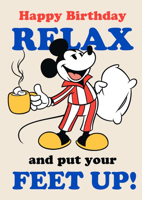 Illustratieve Verjaardagskaart met Mickey Mouse en de tekst: 'Happy Birthday!'. Verras met deze vrolijke Mickey Mouse Disney Verjaardagskaart.