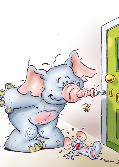 Grappige verhuiskaart van Doodles, met muis die aan het verhuizen is.
