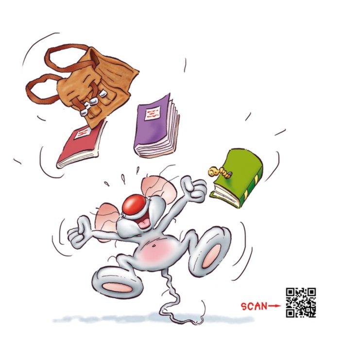 Iemand geslaagd? Feliciteer hem of haar met deze drukke kaart. De muis is in ieder geval blij.