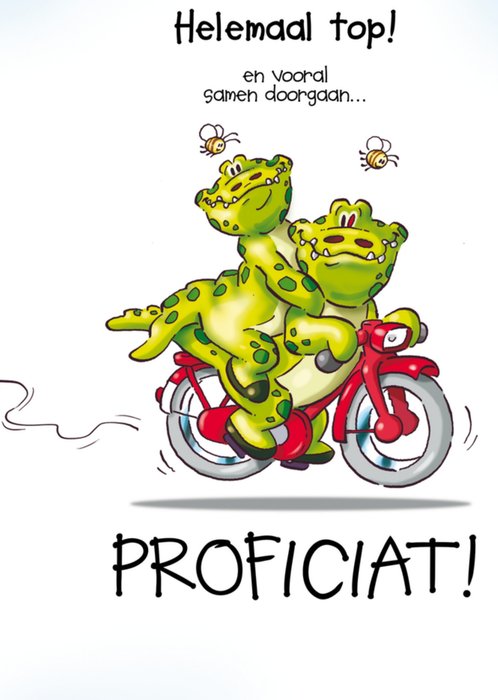 Blauwe jubileumkaart van Doodles, met op de voorkant knuffelende krokodillen en met de tekst: 25 jaar samen.