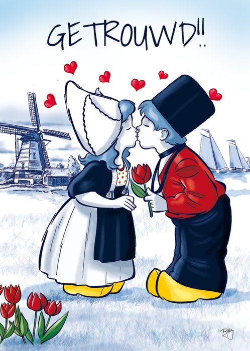 Een kleurrijk stel, zowel letterlijk als figuurlijk. Het zijn leuke, grappig getekende dieren gecreëerd door Ray Nicholson. Ze proberen altijd op een aardige manier een boodschap te brengen. Lief, komisch soms wat cynisch, maar meestal vrolijk om zo te proberen een glimlach bij je los te maken. Verras met deze schattig huwelijkskaart. De kaart is niet aanpasbaar.