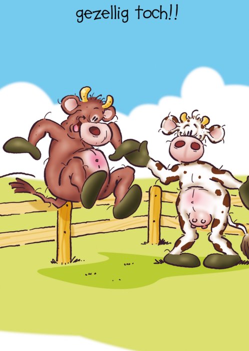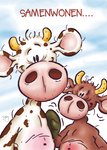 Vrolijke nieuwe woning kaart om iemand mee te verrassen met op de kaart twee koeien uit de Doodles collectie.