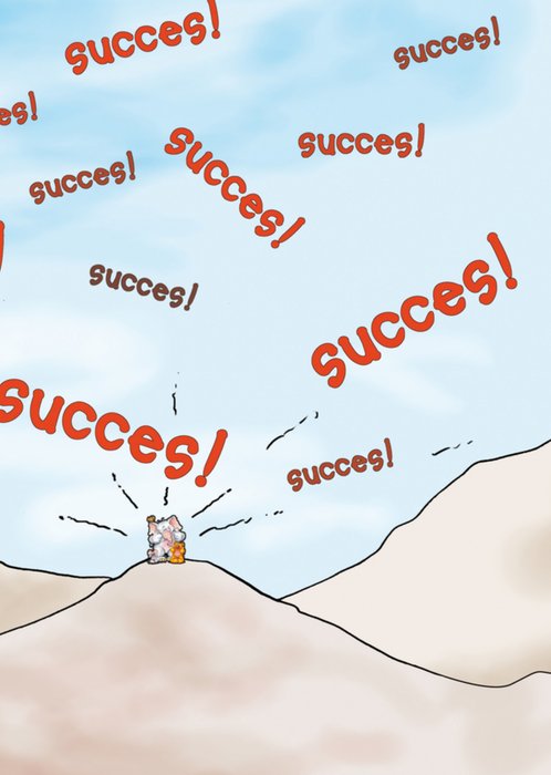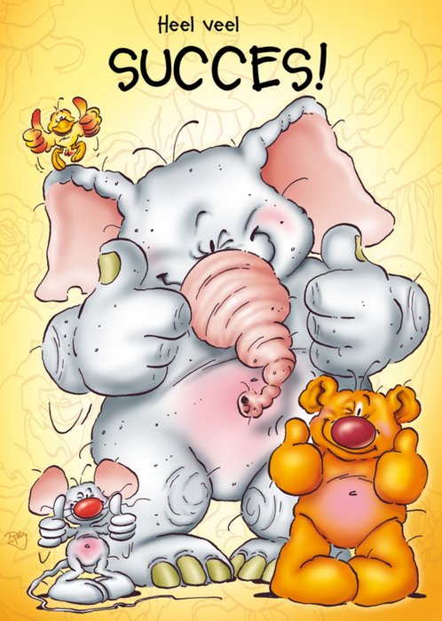 Vrolijke succeskaart van Doodles, met een olifant, beer, muis en vogel.