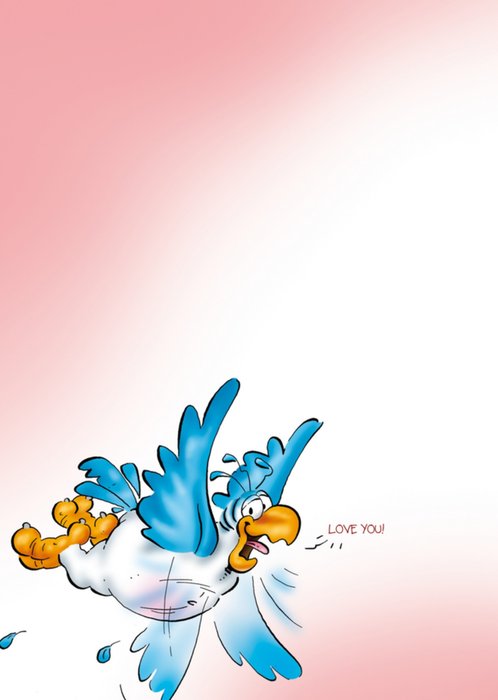 Valentijnskaart van Doodles met een vogel die een groot hart met: love in zijn handen heeft. Daarboven staat de tekst: een kaartje...