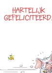 Op deze kaart staat een grote '16'. Daaronder een olifant die voorbij sjeest op zijn scooter. Uit de collectie van Doodles.