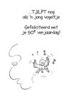 Schattige verjaardagskaart uit de collectie van Doodles. Op de kaart een gele vogel met daarboven de tekst 'Deze Sarah'.