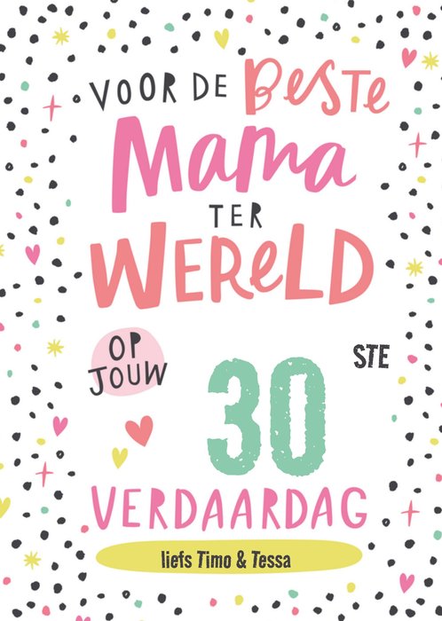 Vrolijke verjaardagskaart met leeftijd en aanpasbare naam.