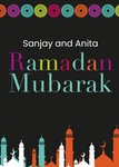 Verras iemand met deze vrolijke Ramadan Mubarak kaart. De naam is aanpasbaar.