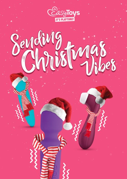 Brutale kerstkaart met de tekst: 'Sending Christmas vibes.' Verras iemand en laat hen lachen met deze kerstkaart van EasyToys. It's playtime!