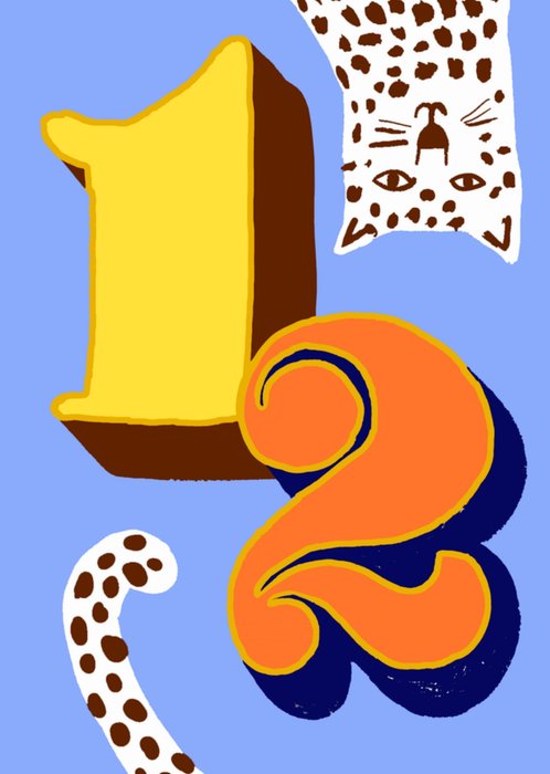 Verras iemand met deze vrolijke kaart met een illustratie van een groot nummer twaalf met een luipaard op de achtergrond. De kaart is niet aanpasbaar.