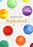 Feliciteer de jarige met deze vrolijke verjaardagskaart met ballonnen en de tekst: Hartelijk gefeliciteerd.