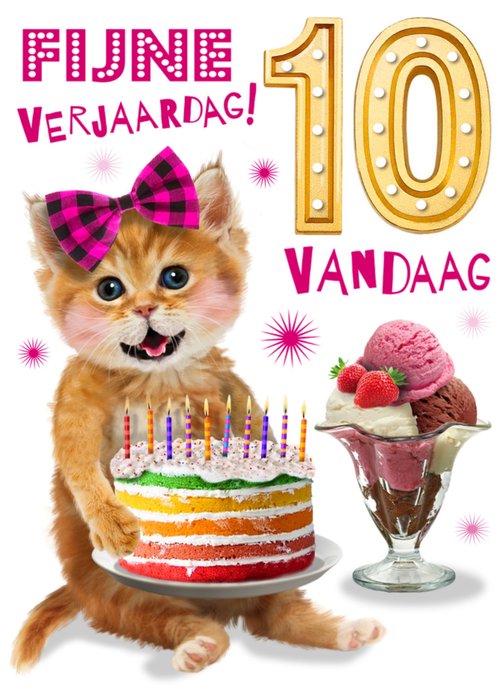 Lieve verjaardagskaart met illustratie van een kat en leeftijd.