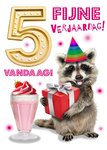 Lieve verjaardagskaart met wasbeer en de tekst: 5 vandaag! Fijne verjaardag!