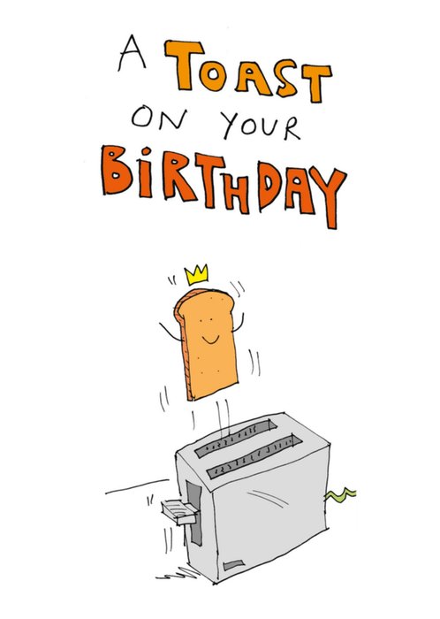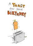 Grappige verjaardagskaart met een geroosterd broodje en de tekst: A toast on your birthday