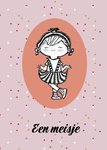 Een leuk kaartje voor de geboorte van een meisje ontworpen door Fiep Westendorp met een schattig meisje op de kaart.