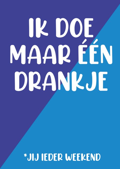 Grappige verjaadagskaart met de tekst: Ik doe maar één drankje *jij ieder weekend