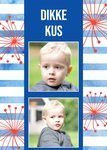 Hipp fotokaart van Greetz met 2 foto's en blauwe strepen.