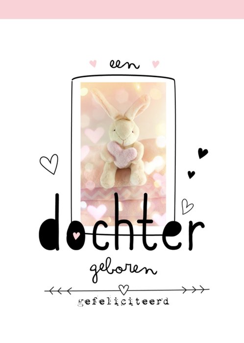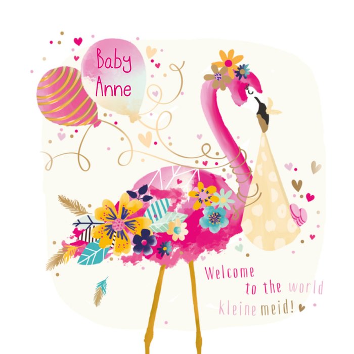 Lieve geboortekaart met eenhoorn en aanpasbare naam.