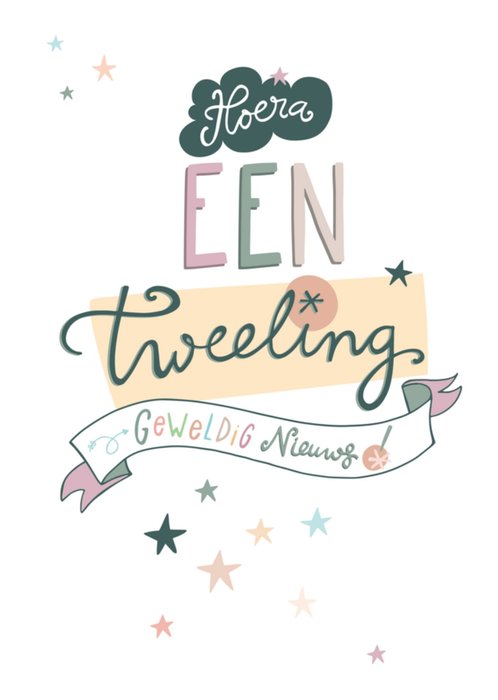 Leuke geboortekaart met de tekst: Hoera een tweeling geweldig nieuws