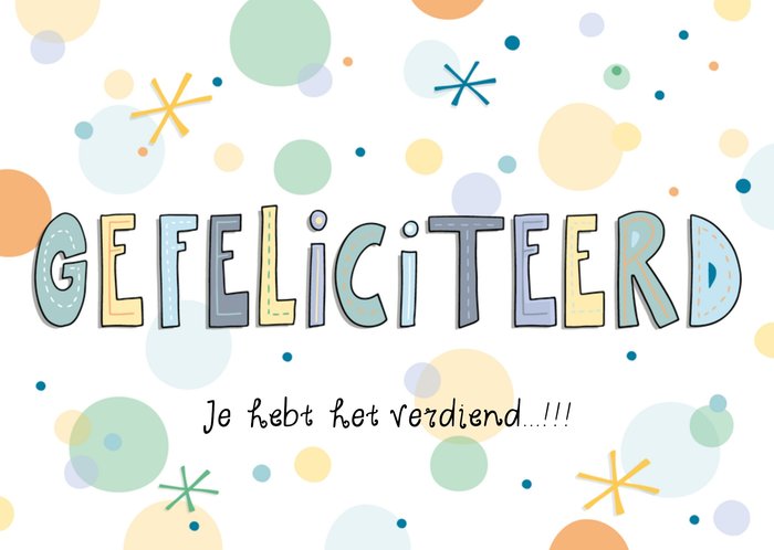 Leuke gefeliciteerdkaart met de tekst: Gefeliciteerd je hebt het verdiend!!!