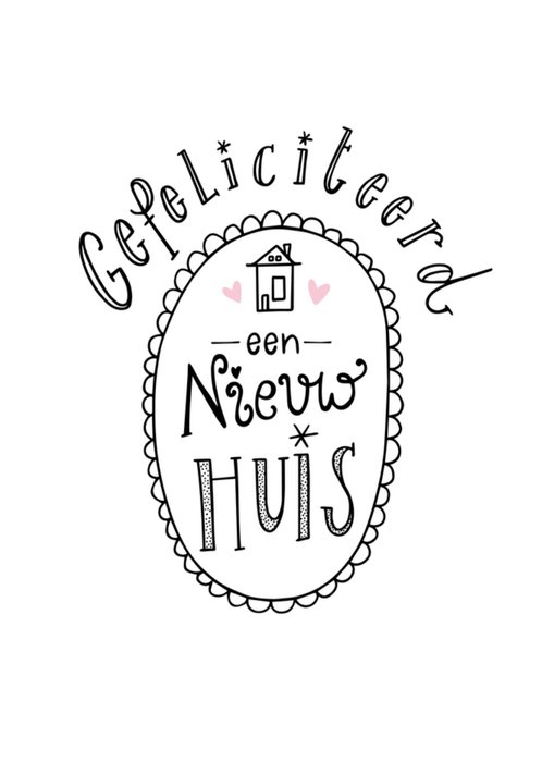 Minimalistische nieuwe woning kaart met de tekst: 'Gefeliciteerd een nieuwe huis'. Verras iemand met deze leuke nieuwe woning kaart van Funny Side Up.