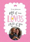 Typografische valentijnskaart met een roze achtergrond, aanpasbare foto en de tekst: 'All of me loves all of you'. Verras je liefde met deze lieve valentijnskaart van Funny Side Up.
