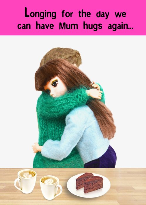 Hiep hiep hoera! Jij kent iemand die jarig is. Stuur deze verjaardagkaart om te feliciteren. Op de kaart staat: Longing for the day we can have mum hugs again..