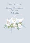 Lieve kaart met aanpasbare naam en de tekst: Gefeliciteerd [naam] met jullie adoptie.