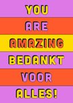 Bedank iemand met deze vrolijke bedankkaart. Op de kaart staat: You are amazing bedankt voor alles!