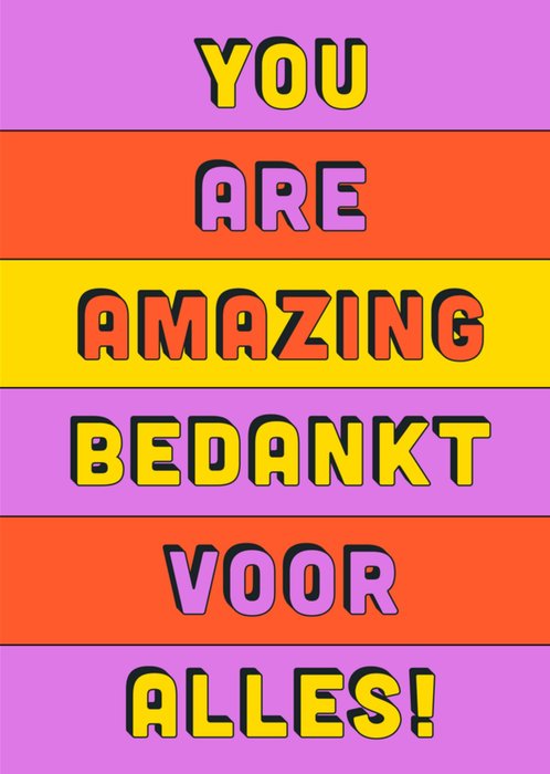 Bedank iemand met deze vrolijke bedankkaart. Op de kaart staat: You are amazing bedankt voor alles!