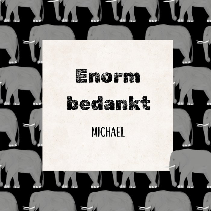 Bedank enorm met dit leuke kaartje met olifanten erop. De naam op de kaart is aanpasbaar.Wenskaart van Greetz ontworpen door Greetz designers, volgens de laatste trends. Voeg je eigen foto('s), tekst, & versiering toe om de kaart extra persoonlijk te maken. Je kunt de kaart toevoegen aan je favorieten of tussentijds opslaan om deze later af te maken. Toch liever een ander design? Bekijk alle bedankkaarten!