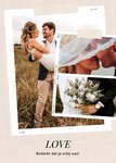 Op deze kaart kunnen eigen foto's worden geplaatst. Onderin staat de tekst 'Love, bedankt dat je erbij was!'.