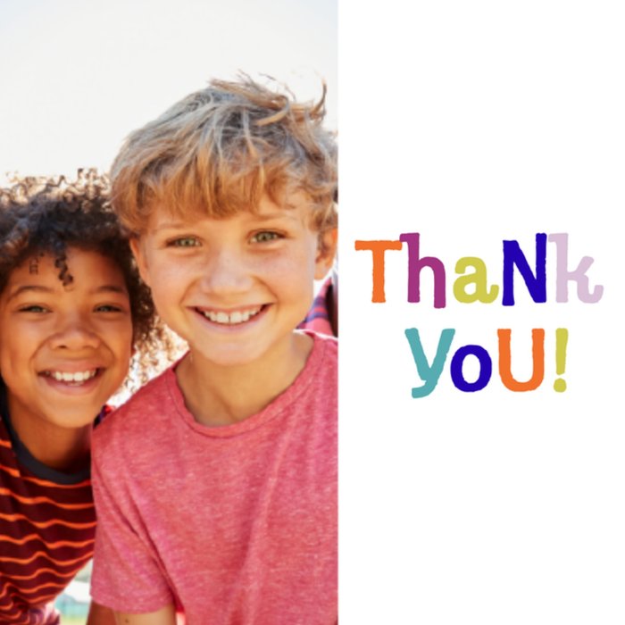 Leuke bedanktkaart met tekst: Thank you! Ook kun je een foto toevoegen.