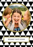 Leuke fotokaart met aapasbare tekst en een patroon.