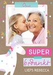 Leuke fotokaart met eenhoorn en aanpasbare naam.